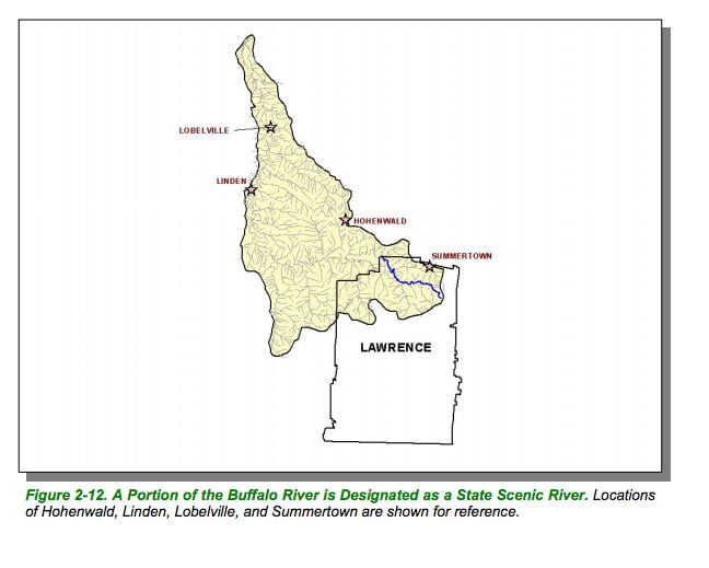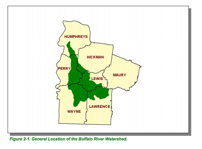 On Google’s Buffalo River Maps use controls to scroll, zoom, topography/terrain, charts, satellite, geography etc